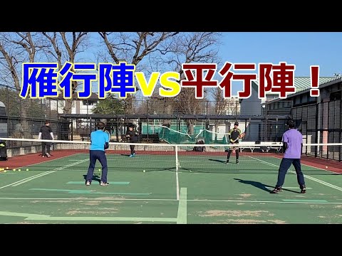 雁行陣vs平行陣(浅く低い球出しからのフリーラリー)(動画参照)